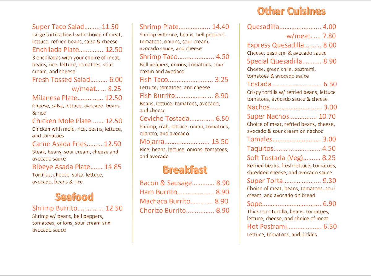 The menu features a delightful assortment, including their signature Super Burger and a range of labor-of-love breakfast burritos like the Chorizo Breakfast Burrito and Machaca Burrito.